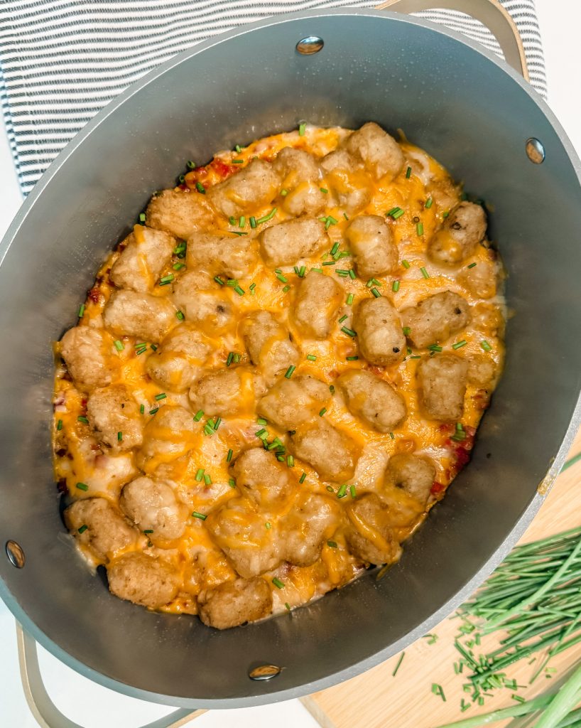 A Slow Cooker Breakfast Tater Tot Casserole is the perfect breakfast recipe to feed a crowd, or make for meal prep. It’s cheesy, hearty, and easy to throw together! Perfect for the busy holiday season.