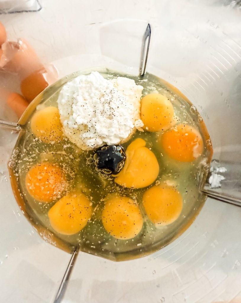 3. In a blender, combine eggs,cottage cheese, and salt & pepper. Blend until completely smooth—this is the secret to that café-style, velvety finish.