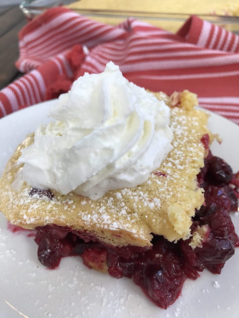 This Easy Light Cranberry Cobbler comes together quickly, using fresh cranberries and a box of cake mix! This is a perfect dessert for the Holidays!