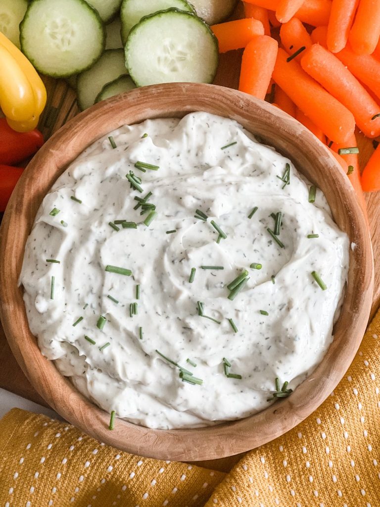 This is the Best Lightened Up Chip and Veggie Dip! It’s Dilly, Creamy, and Delicious! Pair it with chips or cut-up veggies! Requires only 4 ingredients and takes 5 minutes to make!