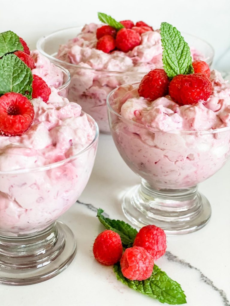 This Raspberry Cheesecake Fluff Salad is so easy to make and makes the perfect side dish- it’s sure to be a hit at your next potluck!